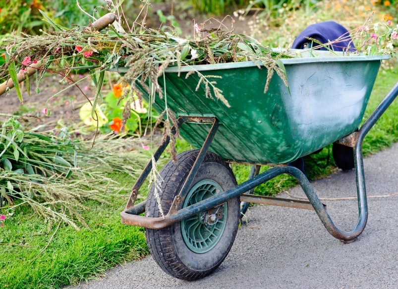 Košnja parcel, rezanje žive meje, odkopavanje humusa in priprava trate.